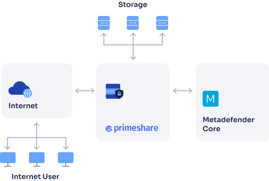 Primeshare's seamless integration with OPSWAT's Metadefender ensures that every time a user uploads a file, it is scanned and sanitized before you or other users can access it. Our file scanning mechanism is powered by OPSWAT technology which scans files using multiple scanning engines for malware detection. When the scan is complete, your Primeshare client portal will provide your users with a sanitized file or a scan result depending on the status of the file that was uploaded. Users can download the original file or the sanitized file depending on their needs and permissions.